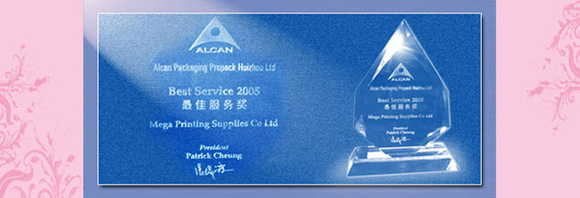 2006年6月9日,榮獲ALCAN 集團(tuán)惠州寶柏公司2005年度油墨供應(yīng)商 “最佳服務(wù)獎(jiǎng)”。